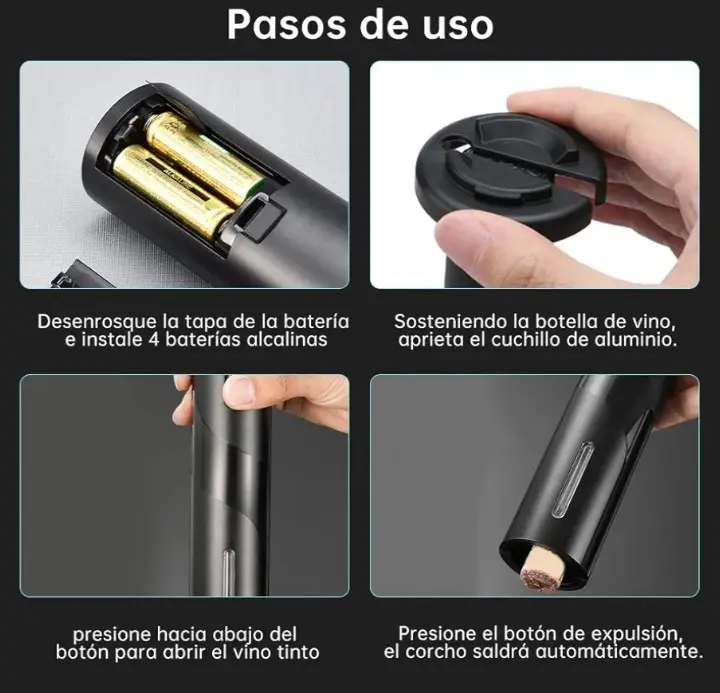 A diferencia de un sacacorcho convencional, que requiere fuerza, técnica y muchas veces termina en corchos dañados o accidentes, el sacacorchos eléctrico automático garantiza una extracción precisa y sin esfuerzo con solo presionar un botón.
